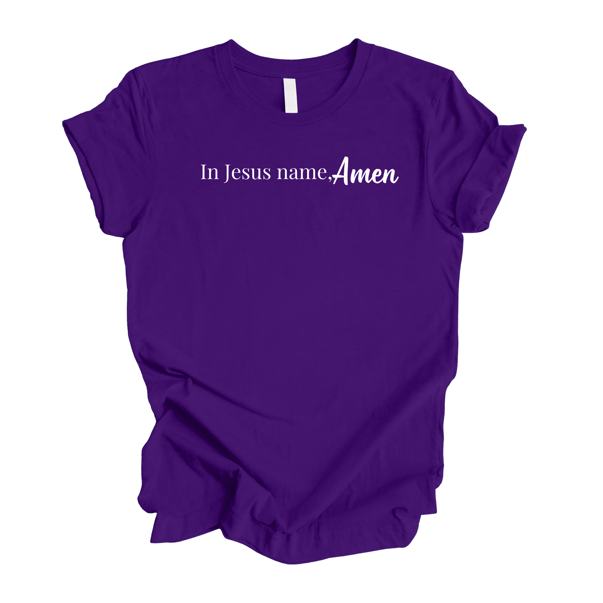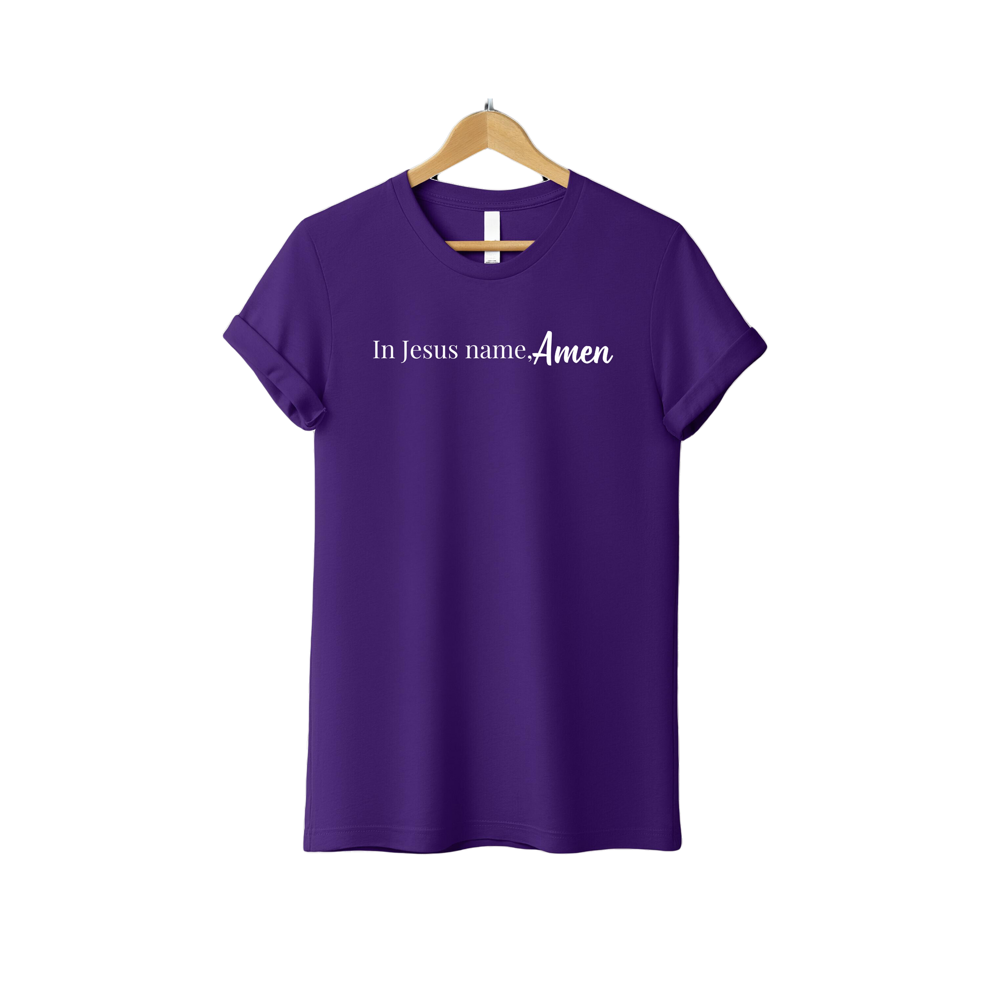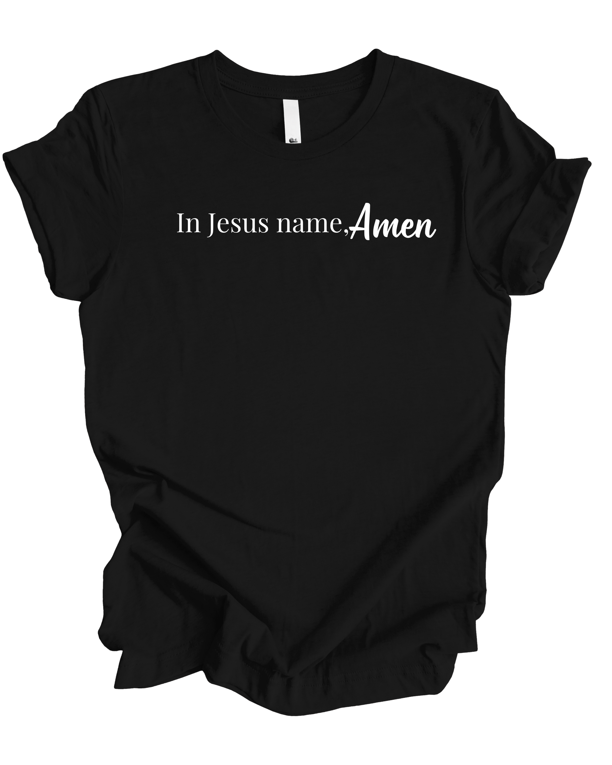 This quality faith based t-shirt showcases the simple yet powerful words, "In Jesus Name, Amen." It's a symbol of hope, strength, and the unshakeable faith that guides us through our darkest days with prayer.