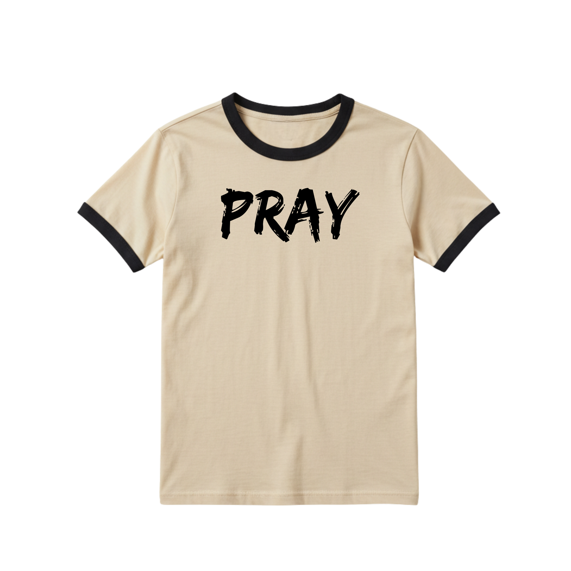 The Pray Night and Day Tee is an everyday Christian T-shirt designed to as a reminder that prayer isn't just for Sundays-it's your direct connection to God 24/7. Its a Christian apparel staple that's perfect for layering or standing on its own. It's soft natural color, black collar, and sleeve tips give this shirt a vintage edge while the message keeps you grounded: prayer isn’t a backup plan — it’s the first move.